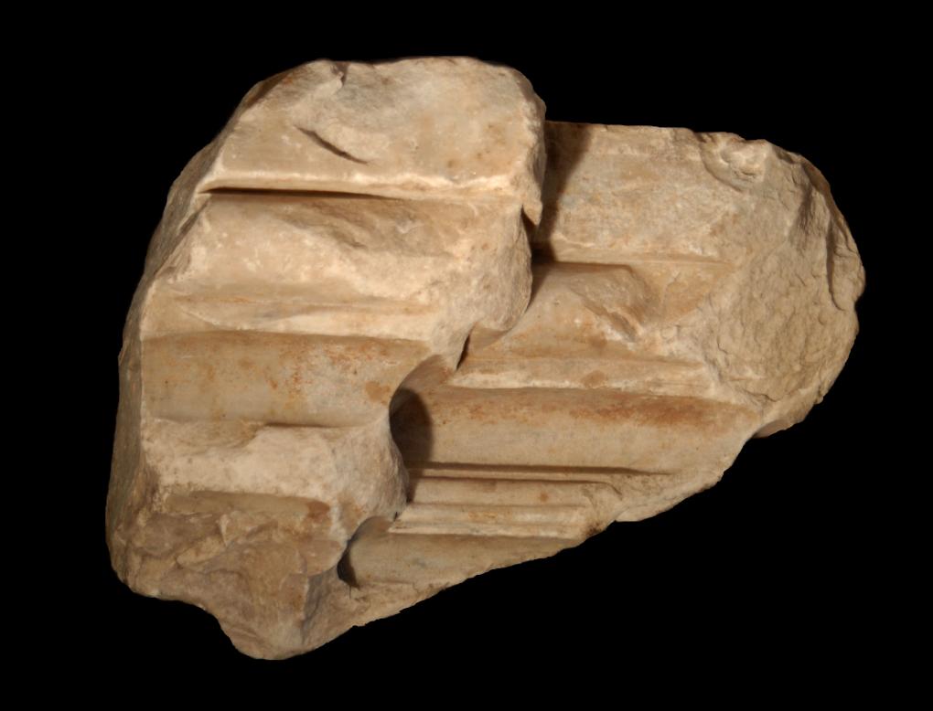 elementi architettonici e di rivestimento, elementi architettonici, cornice . Frammento angolare di cornice. Ha i fianchi, il retro e la superficie inferiore fratturati. Si conserva la superficie superiore lavorata a gradina e parte della superficie anteriore decorata da una modanatura costituita da: (dall'alto) fascia, toro, scozia, doppio tondino, e scozia. Manca la parte inferiore della superficie anteriore