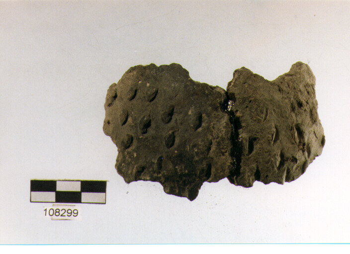 parete vascolare arrotondata, probabilmente attribuibile a scodella, decorata con impressioni probabilmente a unghiate