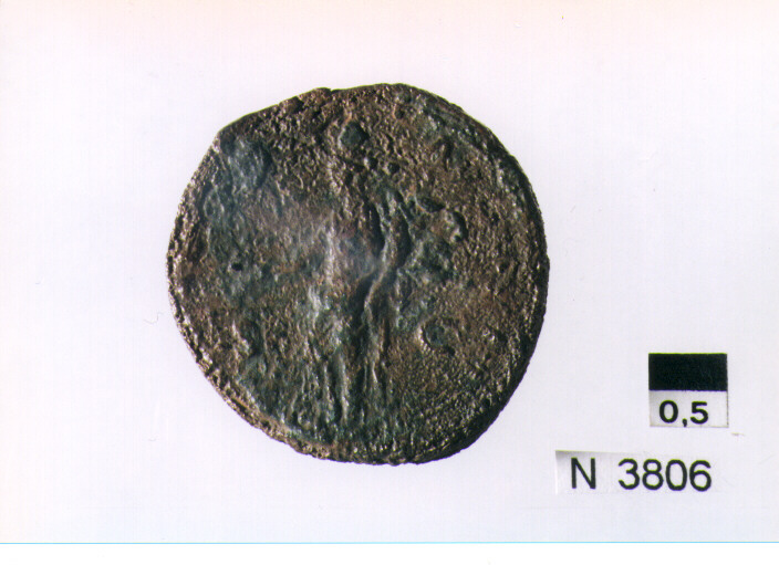 R/ testa laureata di Domiziano(?) a destra; V/ figura femminile, Providentia Fortuna(?) stante a sinistra con cornucopia e spighe di grano(?),