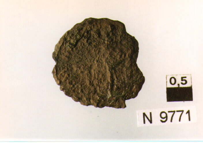 R/ busto diademato di imperatore a destra; V/ figura stante a sinistra, soldato(?),