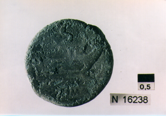 R/ testa di Giove laureata a destra, dietro segno del valore; V/ prua di nave a destra, sopra segno del valore, sotto iscrizione,
