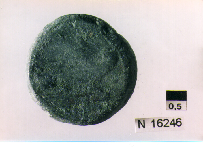 R/ testa di Giove laureato a destra dietro segno del valore; V/ prua di nave a destra sopra segno del valore, sotto iscrizione,