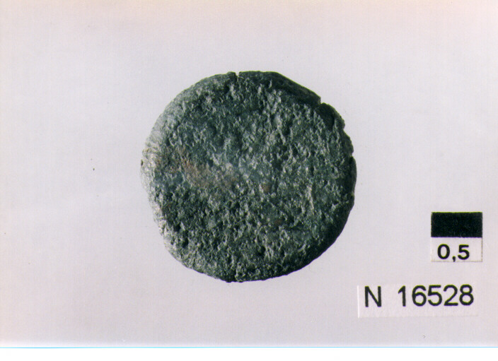 R/ testa di Ercole a destra, dietro segno del valore (tre globetti),