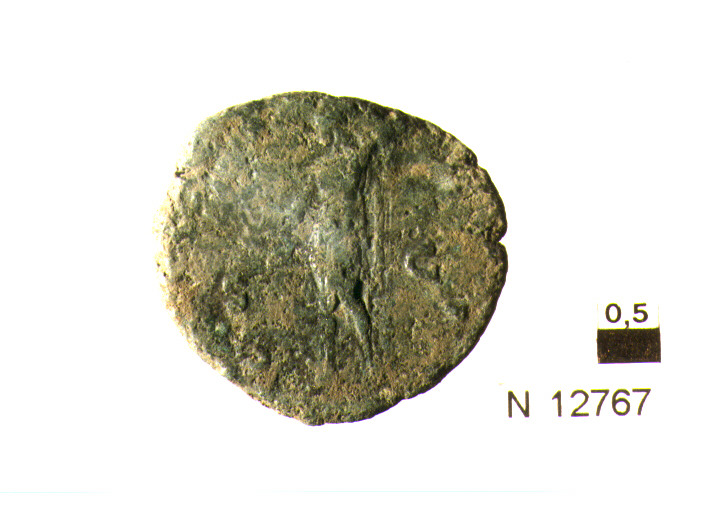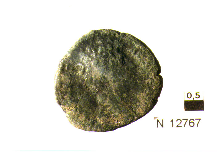R/ testa di Settimio Severo(?) a destra; V/ figura femminile stante a sinistra non identificato, virtus(?),