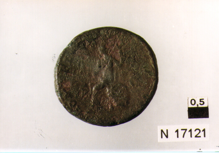 R/ testa laureata e radiata di imperatore M.Aurelio(?) a destra; V/ Roma elmata seduta a sinistra con piccola vittoria e lancia,