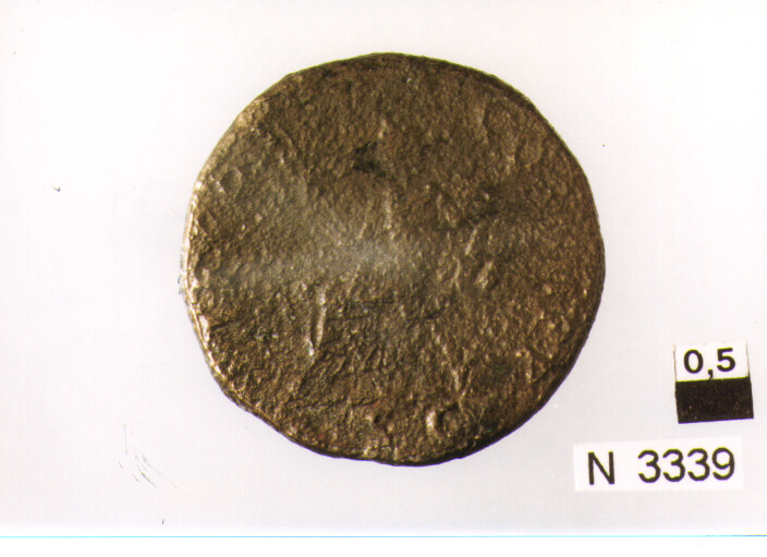 R/ testa radiata di imperatore a destra; V/ Iustitia (?) seduta a sinistra con cornucopia,