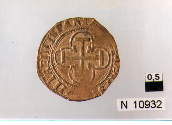 R/ stemma inquadrato e coronato ai lati una lettera e stella; V/ croce potenziata entro cornice quadrilobata con trifoglio agli angoli interni,