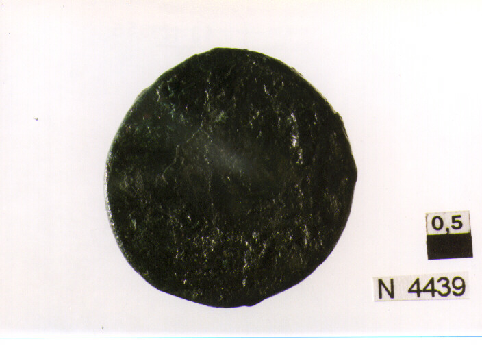R/ testa laureata di Giove a destra, dietro segno del valore; V/ prua a destra, poco leggibile,