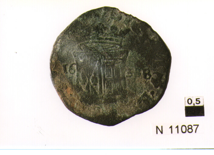 R/ busto con corazza volto a sinistra; V/ stemma partito e coronato,