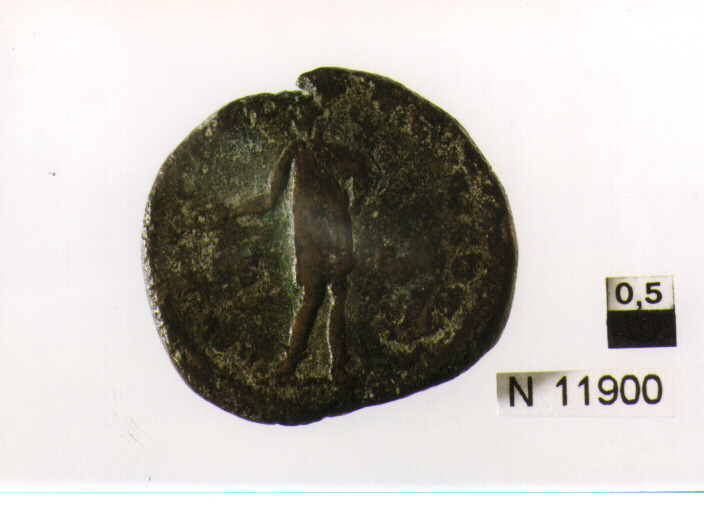 R/ testa radiata di M.Aurelio a destra; V/ imp.(?) stante a sinistra,