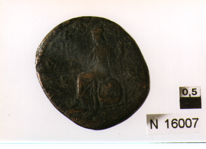 R/ testa radiata di Marco Aurelio a destra; V/ Roma elmata, seduta a sinistra su corazza, con lancia e piccola Vittoria,