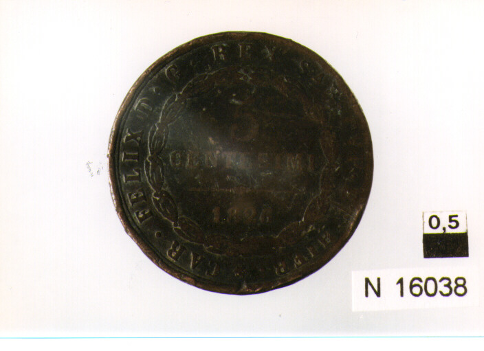 R/ iscrizione nel campo entro corona d'alloro; V/ scudo a cuore, coronato, con l'aquila sabauda, tra due rami di quercia,