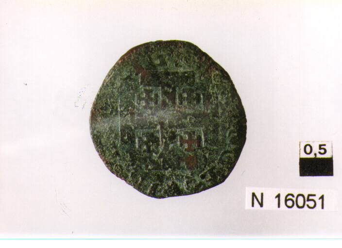 R/ testa volta a destra; V/ croce di Gerusalemme accantonata da quattro crocette,
