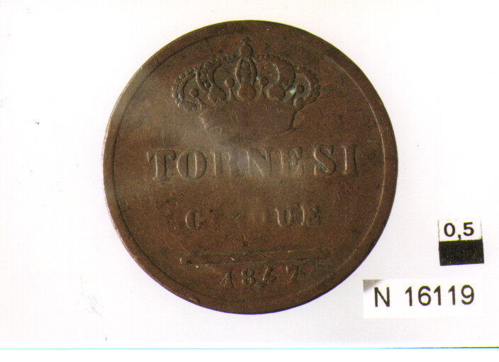 R/ testa del re barbuta volta a destra, sotto stella; V/ coroa reale e iscrizione,