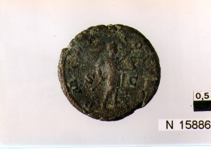 R/ busto drappeggiato di Gordiano laureato a destra; V/ Gordiano in abitimilitari stante a destra tiene una lancia di traverso ed il globo,