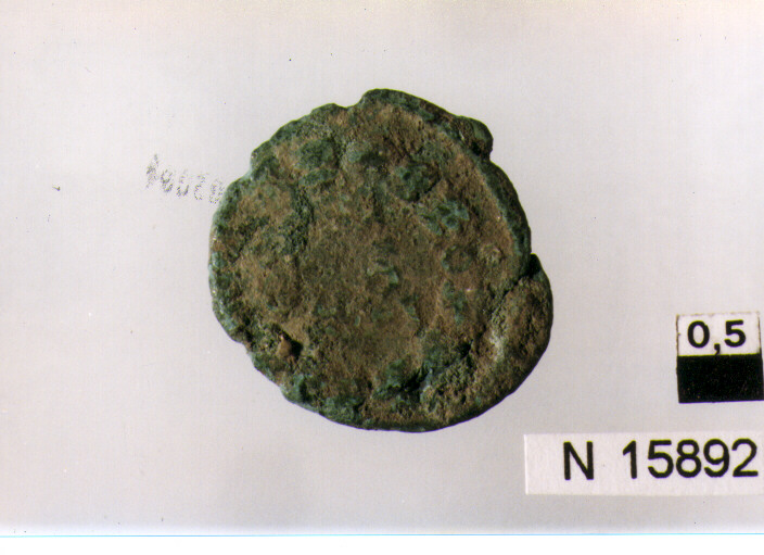 R/ busto radiato a destra; V/ corona d'alloro contenente iscrizione,