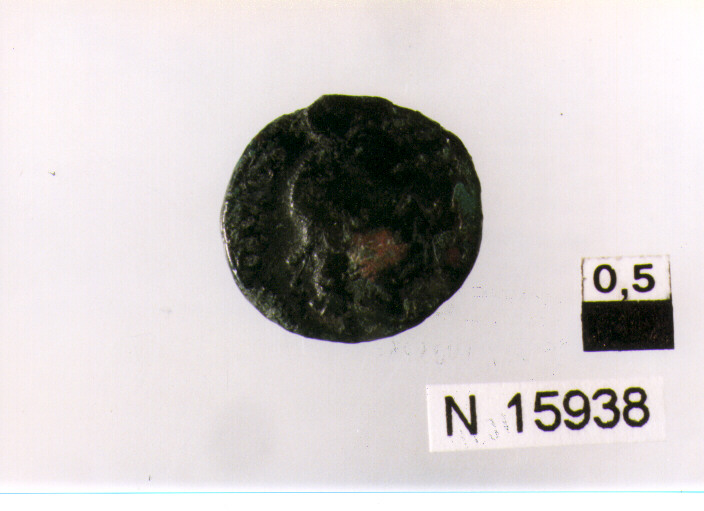 R/ testa diademata a destra; V/ corona d'alloro contenente iscrizione,