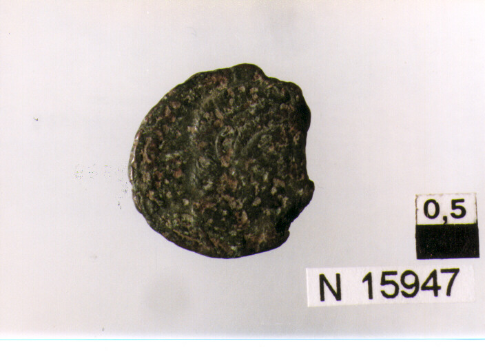 R/ busto drappeggiato e diademato di imperatore a destra; V/ imperatore in abiti militari stante a sinistra con labaro,