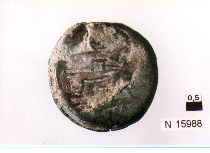 R/ effige di Giano bifronte in alto segno del valore; V/ prua a destra,