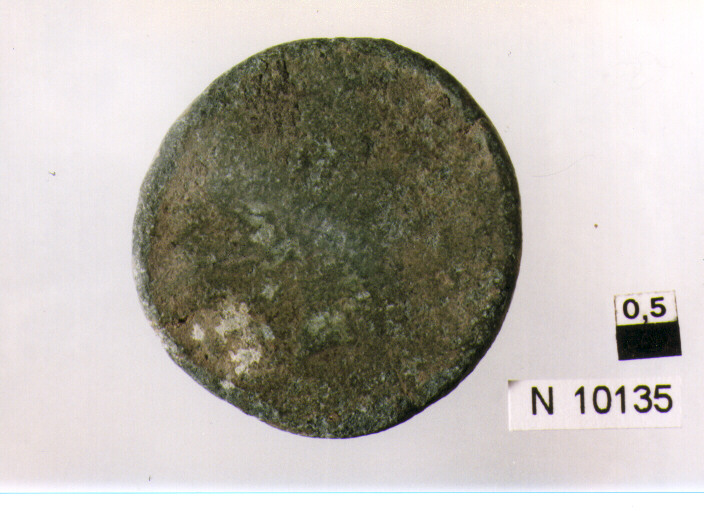R/ testa laureata di Giano bifronte al centro segno del valore; V/ illeggibile,