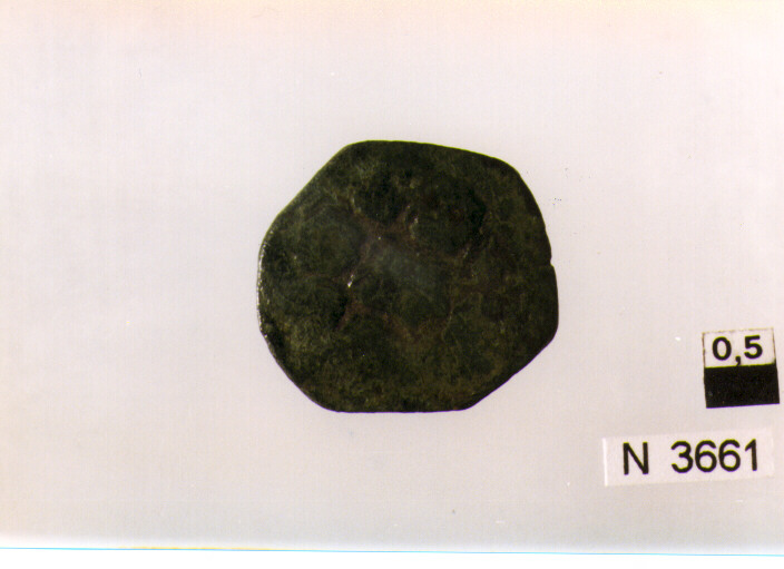 R/ croce patente accantonata da crocette simili entro corona d'alloro; V/scudetto circondato da quattro rosoni e quattro fiamme,
