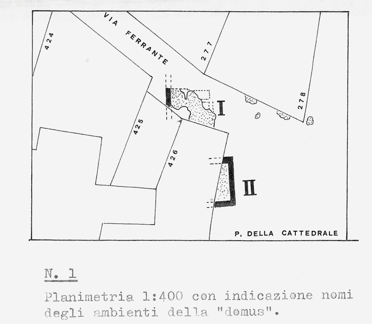 - NOTIZIE STORICO CRITICHE Durante la prima campagna di scavo (1967) si rinvenne il grande ambiente I; nel 1981 fu messo in luce l'ambiente II ed altri brevi tratti del pavimento