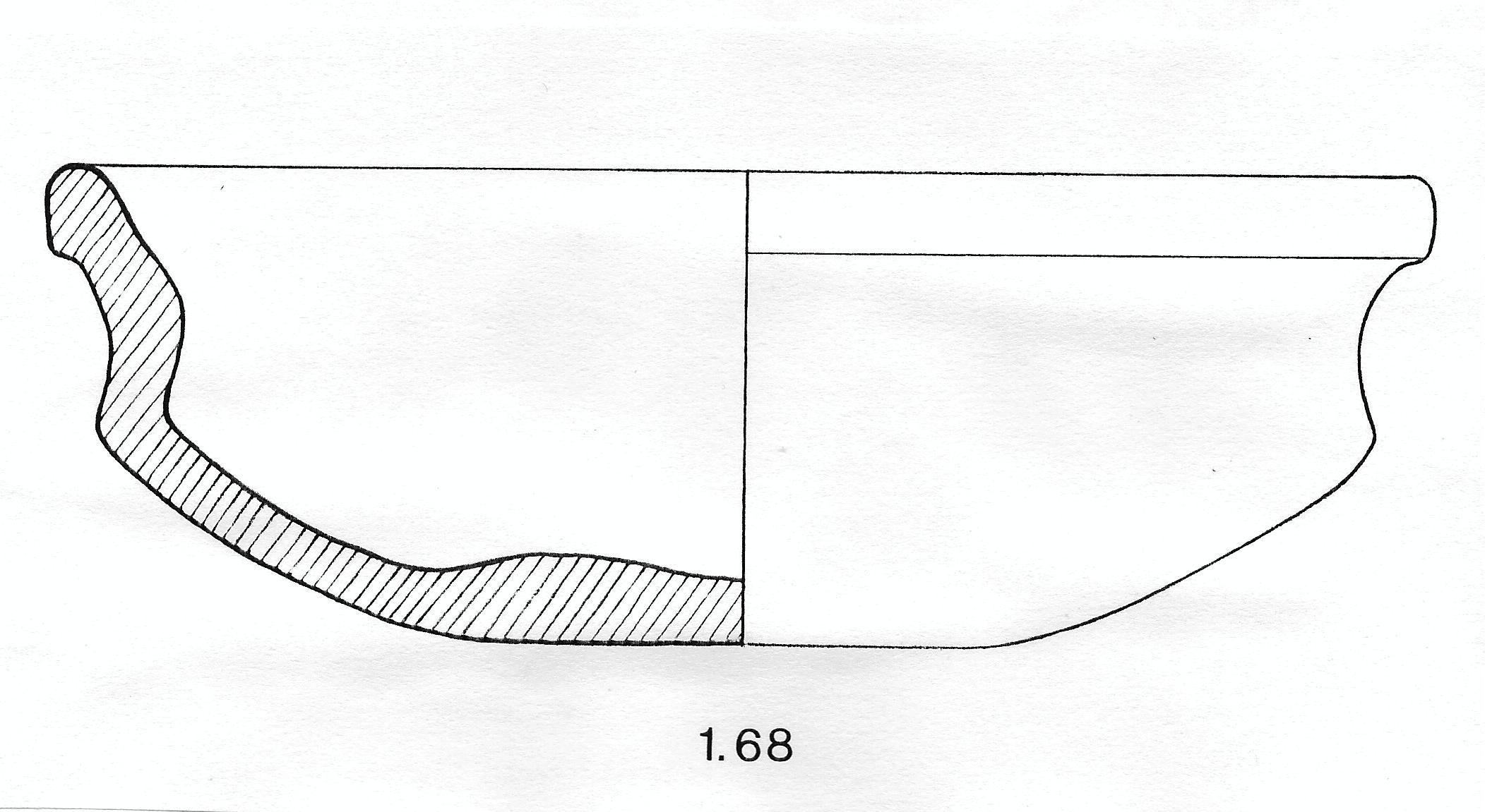 Orlo svasato a fascia, arrotondato superiormente con spigolo inferiore e gola interna; vasca carenata; fondo piatto