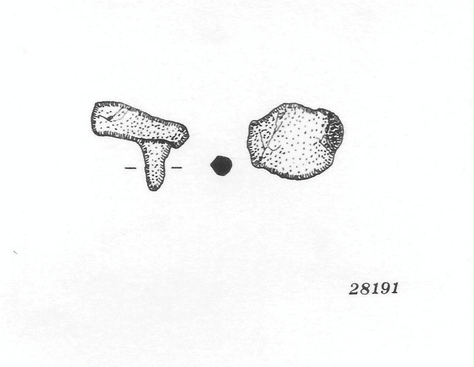 Breve gambo a sezione quadrangolare, asimmetrico; capocchia quadrangolare