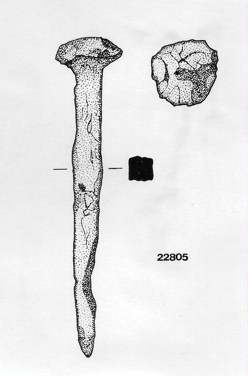 Gambo a sezione quadrangolare con punta flessa lateralmente e capocchia pentagonale notevolmente convessa