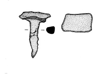 Gambo a sezione quadrangolare e capocchia a contorno rettangolare irregolare, piatta