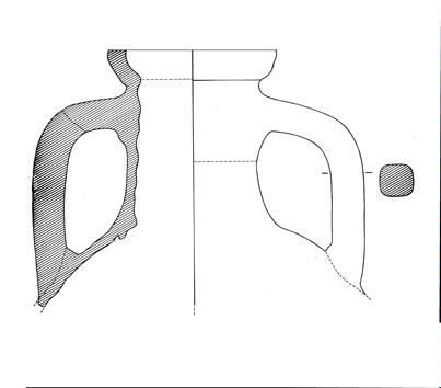 Orlo a fascia, concavo all'interno, a profilo convesso, corpo espanso rispetto al collo cilindrico. Anse verticali a bastoncello impostate nella parte superiore del collo