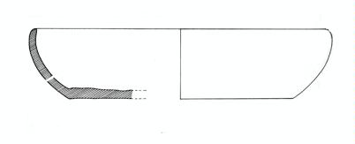 Orlo arrotondato e assottigliato con spigolo interno smussato, parete appena convessa, fondo piatto distinto da spigolo