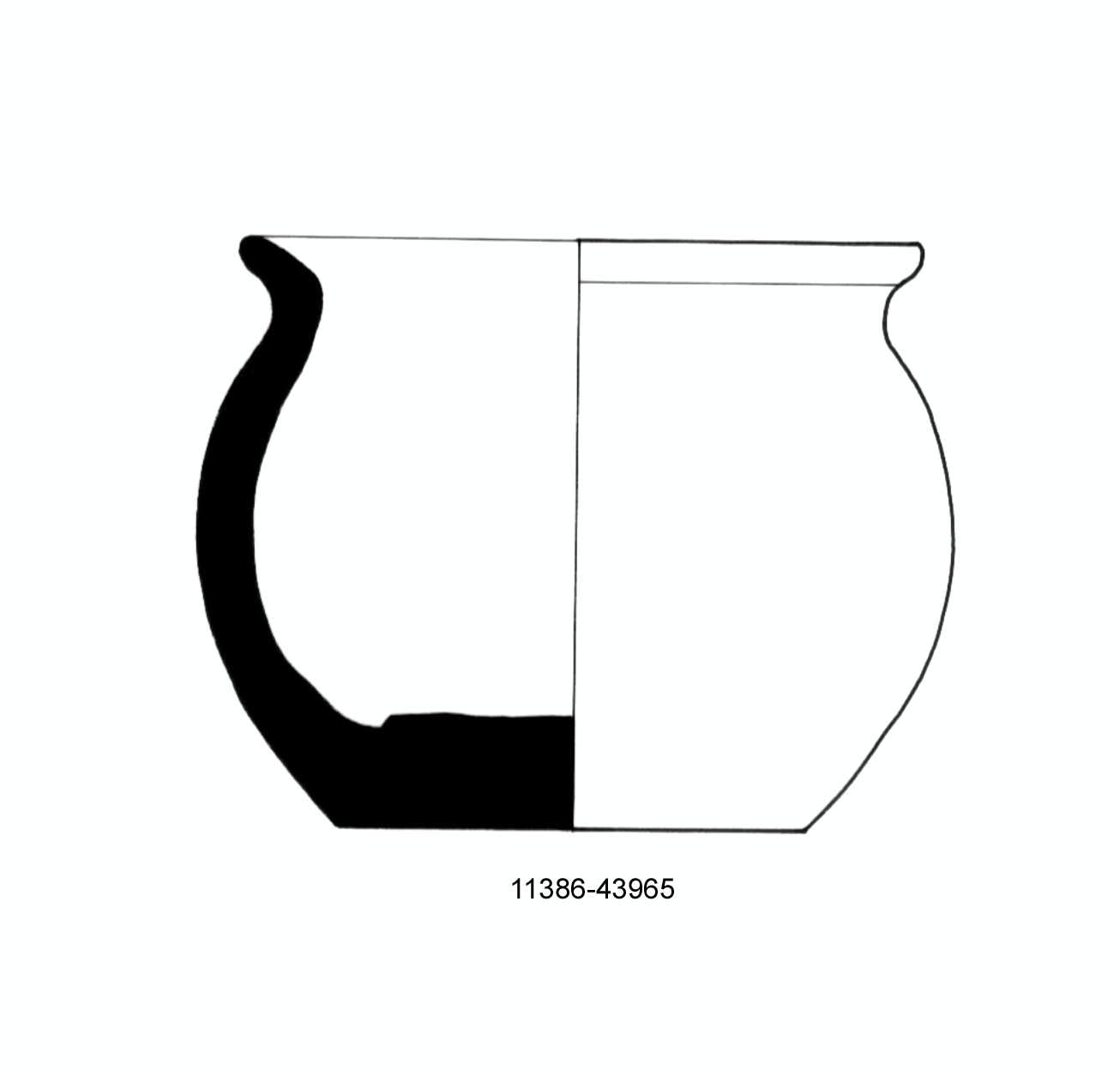Fondo piano, corpo panciuto, breve collo sottolineato da una leggera carena, orlo estroflesso