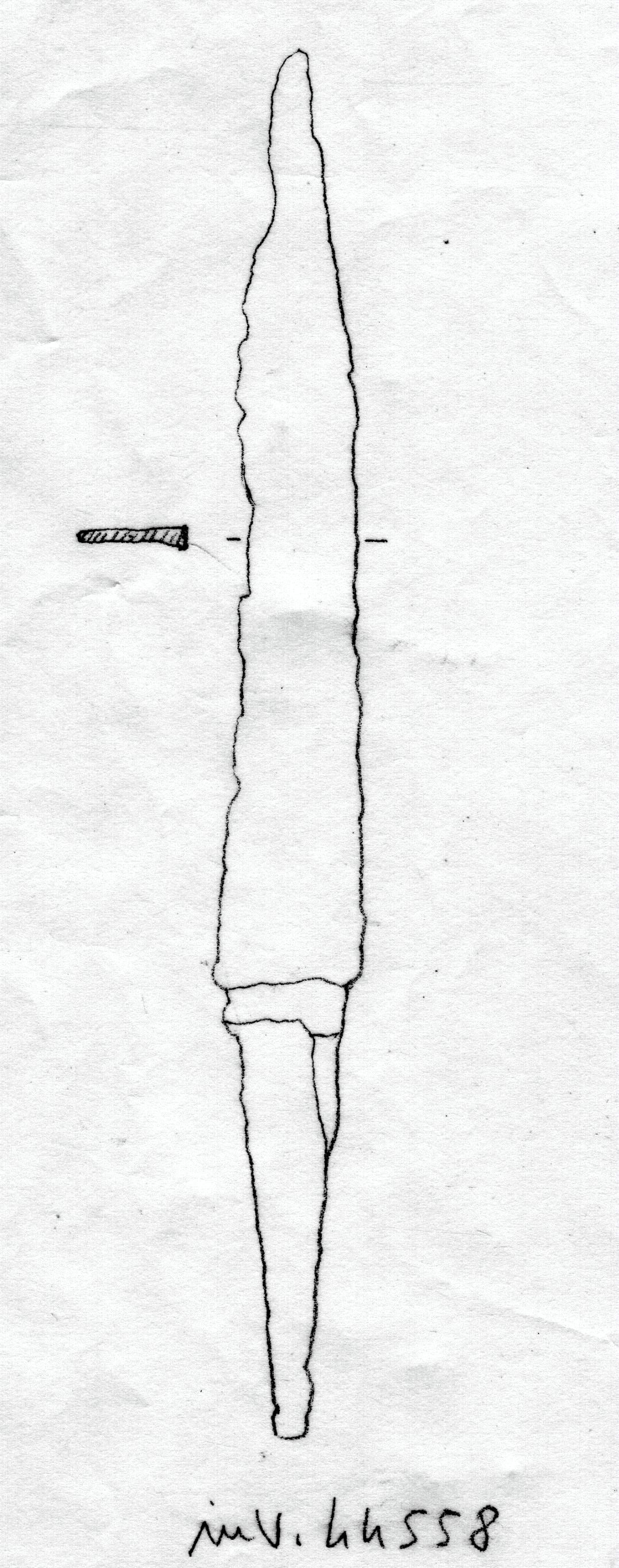 Parte del dorso rettilineo, tagliente curvo e codolo rastremato
