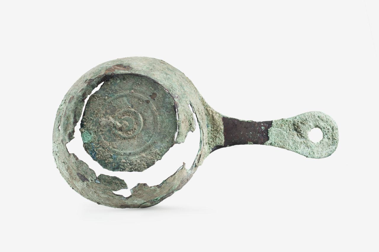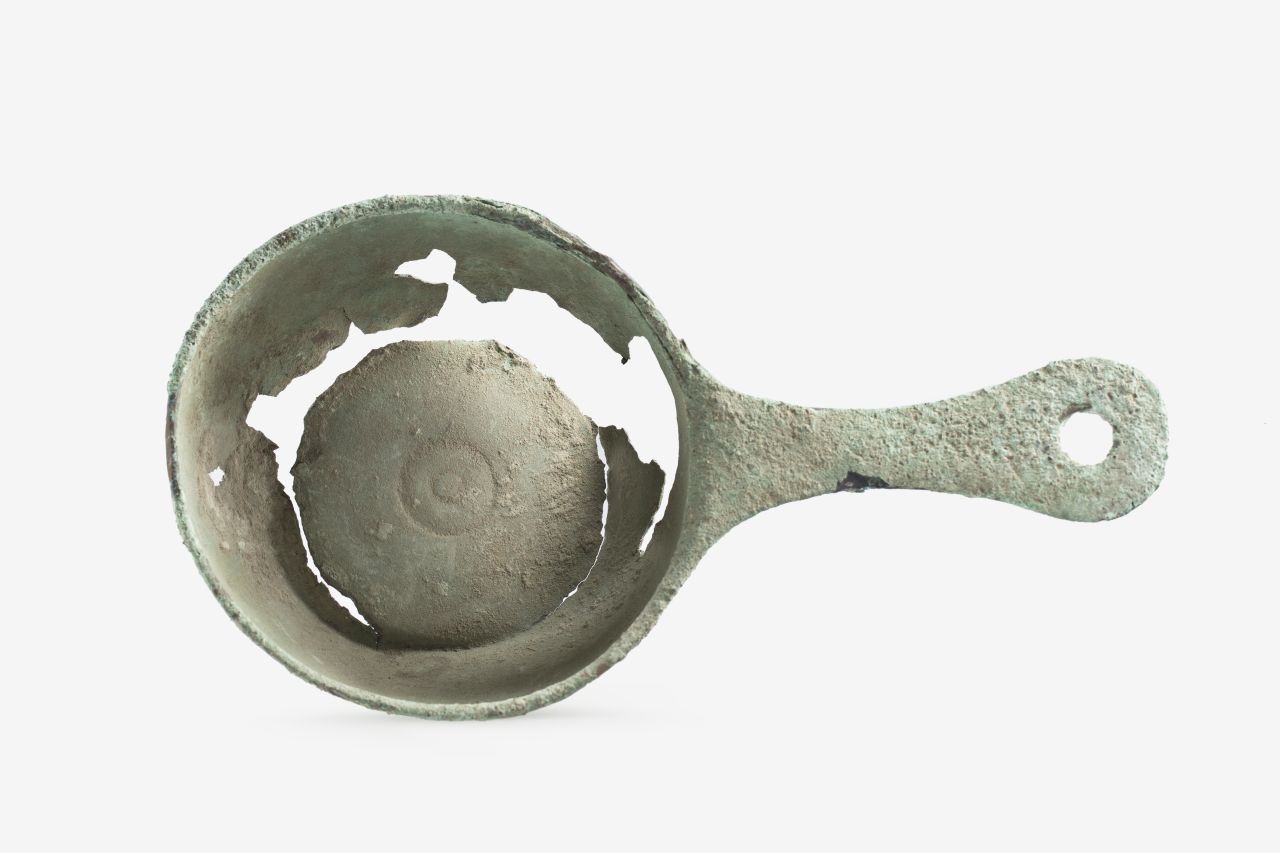 - NOTIZIE STORICO CRITICHE Incrostazioni terrose miste a lapilli ricoprono pressoché uniformemente il recipiente rendendo estremamente difficile l’individuazione degli eventuali motivi decorativi/bolli sul manico e sul corpo del vaso. L'esemplare appartiene alla suppellettile in uso, in area vesuviana, negli anni a ridosso dell'eruzione dal momento che il tipo è prodotto, in ambito romano, dagli ultimi anni del I sec. a.C. fino alla metà del II secolo