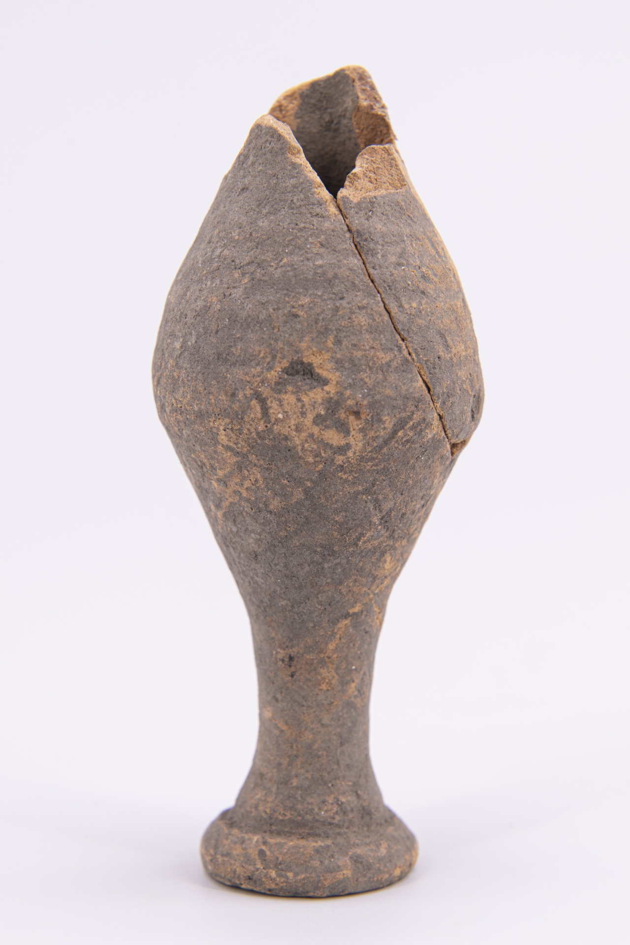 Balsamario fusiforme privo di collo con piccolo piede ad anello schiacciato, fondo pieno e piatto