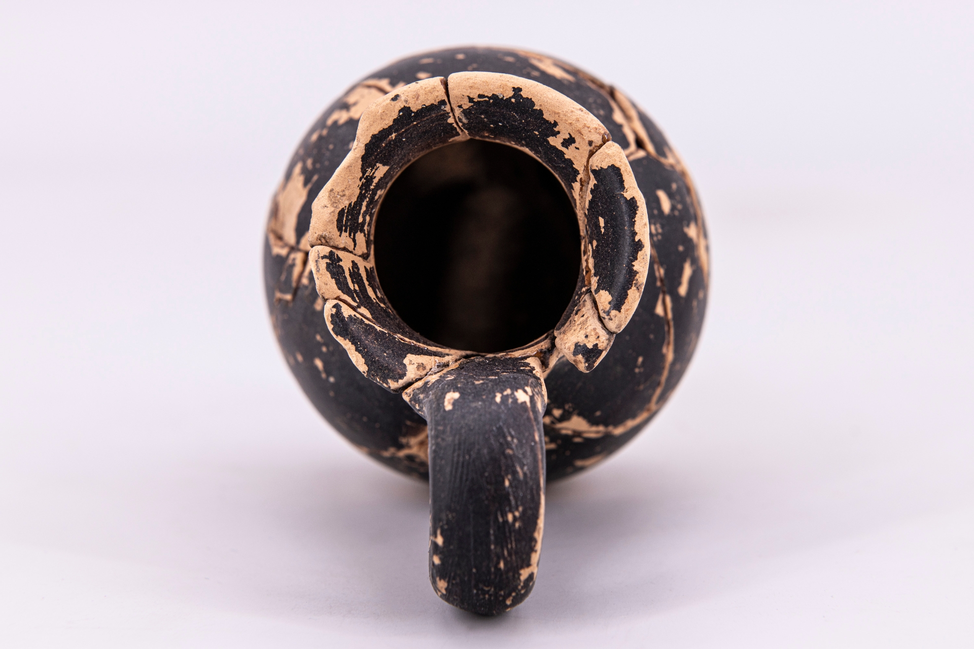 piccola olpetta parzialmente decorata con corpo ovoide ansa a nastro e piede rialzato