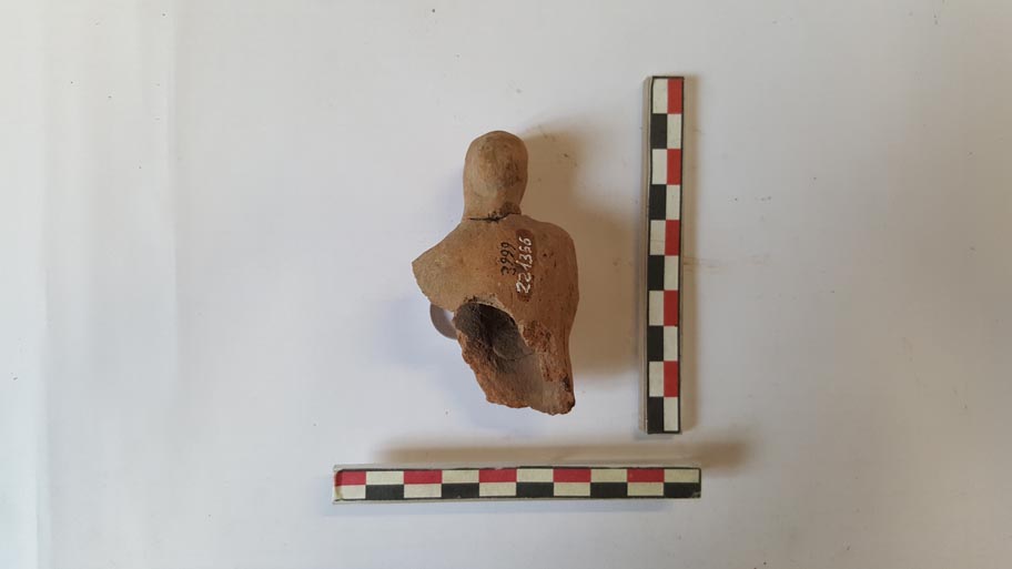 Parte superiore di statuetta femminile in argilla rosata, cava eseguita da matrice stanca