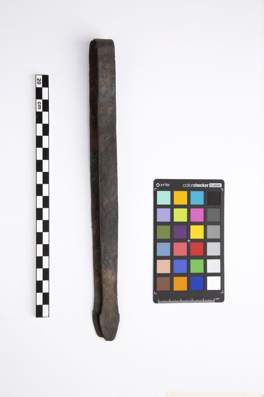 Pinzetta costituita da un'unica fascetta piatta a sezione rettangolare, ripiegato, con le estremità leggermente ingrossate e rastremate