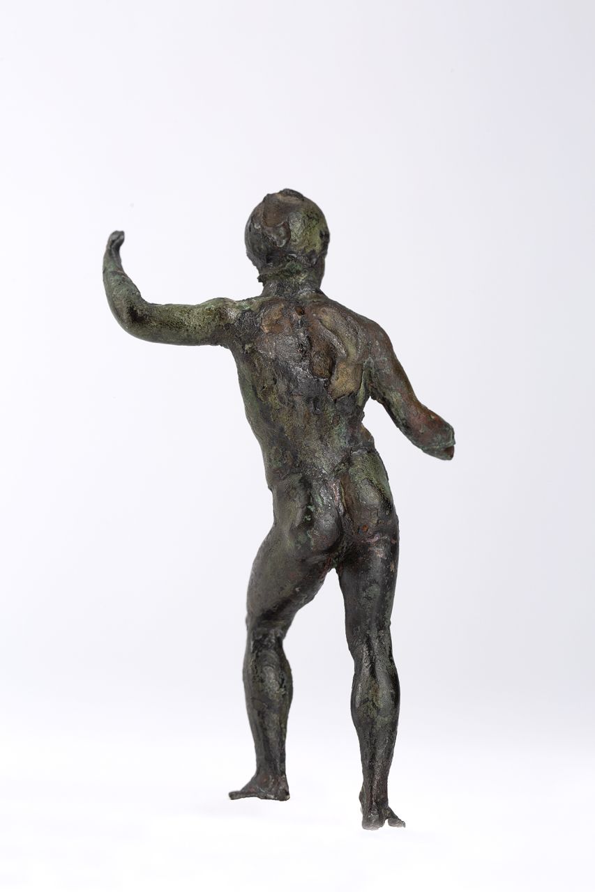 Il dio è nudo, in posizione stante, con il piede sinistro sollevato
