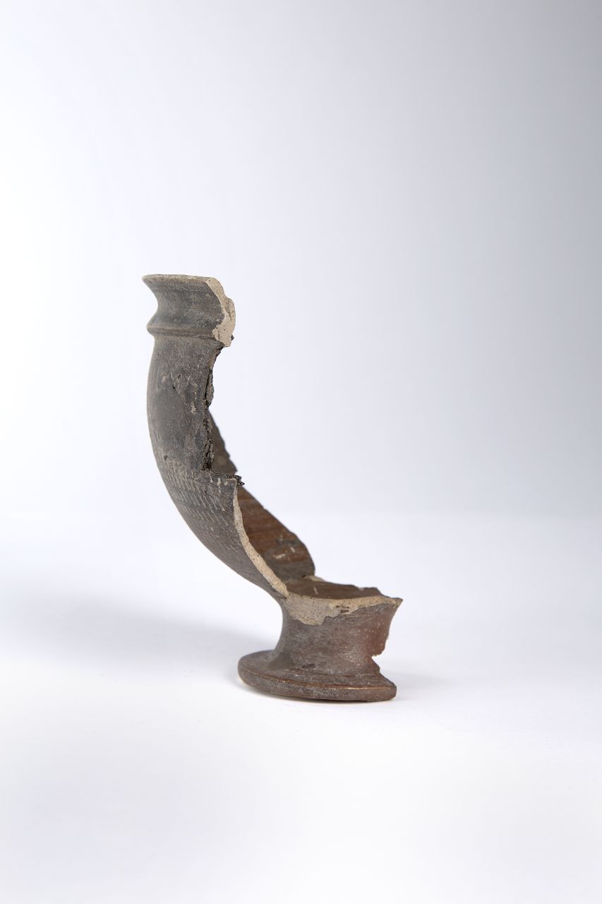 Labbro curvilineo con orlo arrotondato, vasca profonda con profilo a calice, piede a tromba su basso stelo cilindrico. vernice bruno-rossastra