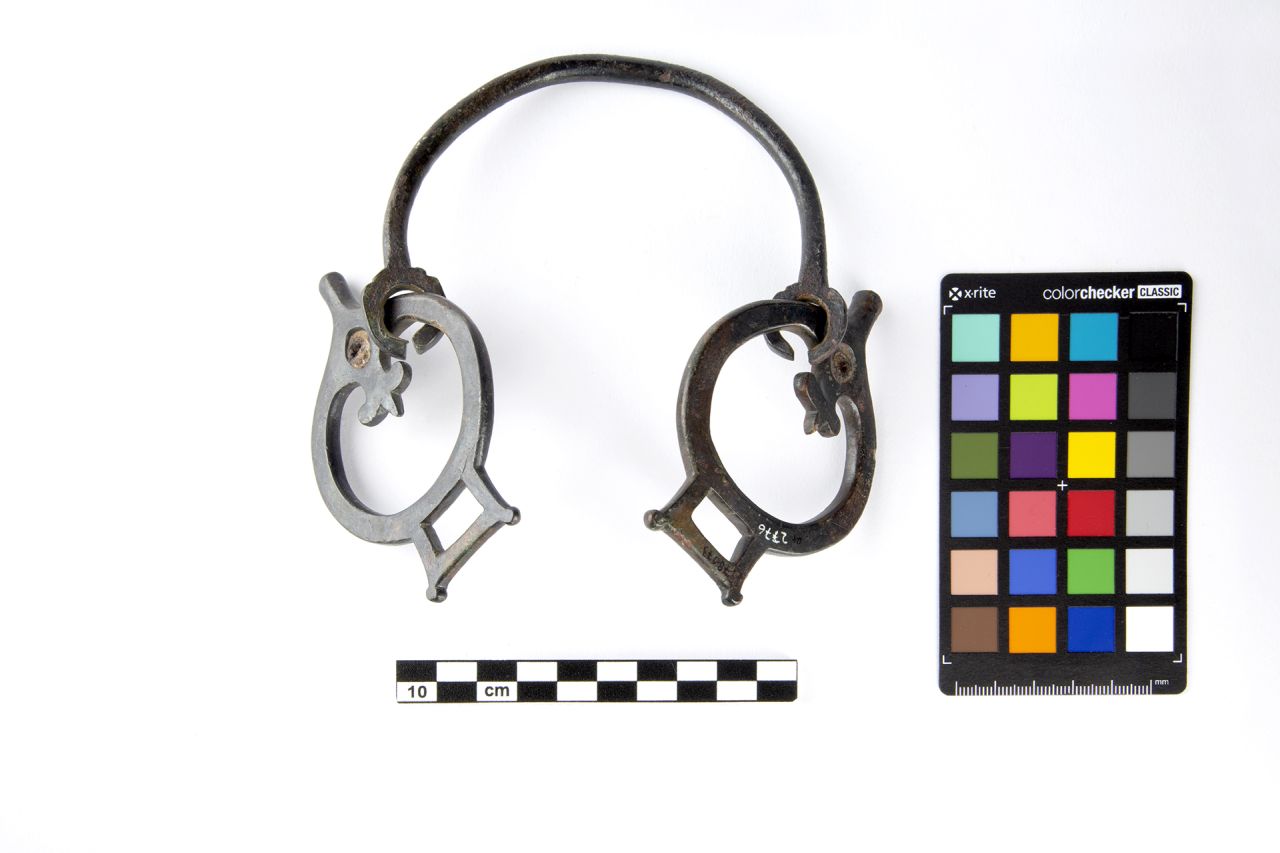 - NOTIZIE STORICO CRITICHE Appartiene ad un morso di tipo fisso di cui si conservano i tiranti laterali connessi ad una ammorsatura ad anelli (del tipo in Kaufmann Heinimann 1998, p. 233, tav. 183) per l'aggancio delle redini. Le prime attestazioni di imboccature in bronzo, compaiono in Grecia, in particolare a Micene, Cipro e Creta, mutuate dalla tecnologia del Vicino Oriente e dell’Egitto. Le forme di tali strumenti per il controllo della cavalcatura rimangono sostanzialmente immutate e, in linea di massima, possono essere distinte in filetti con cannoni semplici, quasi sempre snodati, sin dalle prime attestazioni in ambito scita, e morsi, strumenti col cannone rigido, particolarmente severi e dolorosi, le cui caratteristiche permettevano a chi cavalcava l'animale, un controllo assoluto della cavalcatura (per un inquadramento di questi oggetti, cfr. M. Castelluccia, I morsi bronzei nel Vicino Oriente Antico, in AA. VV., Equus Frenatus, i morsi della collezione Giannelli, Lugano, 2015, pp. 41-90).A questa esigenza va ricondotta la tecnologia delle imboccature con tiranti 'a leva'- tecnicamente simili al nostro esemplare; attestate dal IV sec. a.C. e concepite per un controllo sempre più efficace sulla bocca del cavallo sono molto adatti ad un utilizzo per brevi spostamenti, di questi animali. Sebbene si rimandi a un’origine celtica per questo tipo di morsi realizzati in bronzo o ferro, gli esemplari più antichi finora noti sono stati rinvenuti nell’Italia meridionale e, in seguito, in tutta la penisola con una peculiare tipologia con appendici laterali 'a omega' che rimarrà caratteristica dell’ambito italico ancora nei secoli successivi