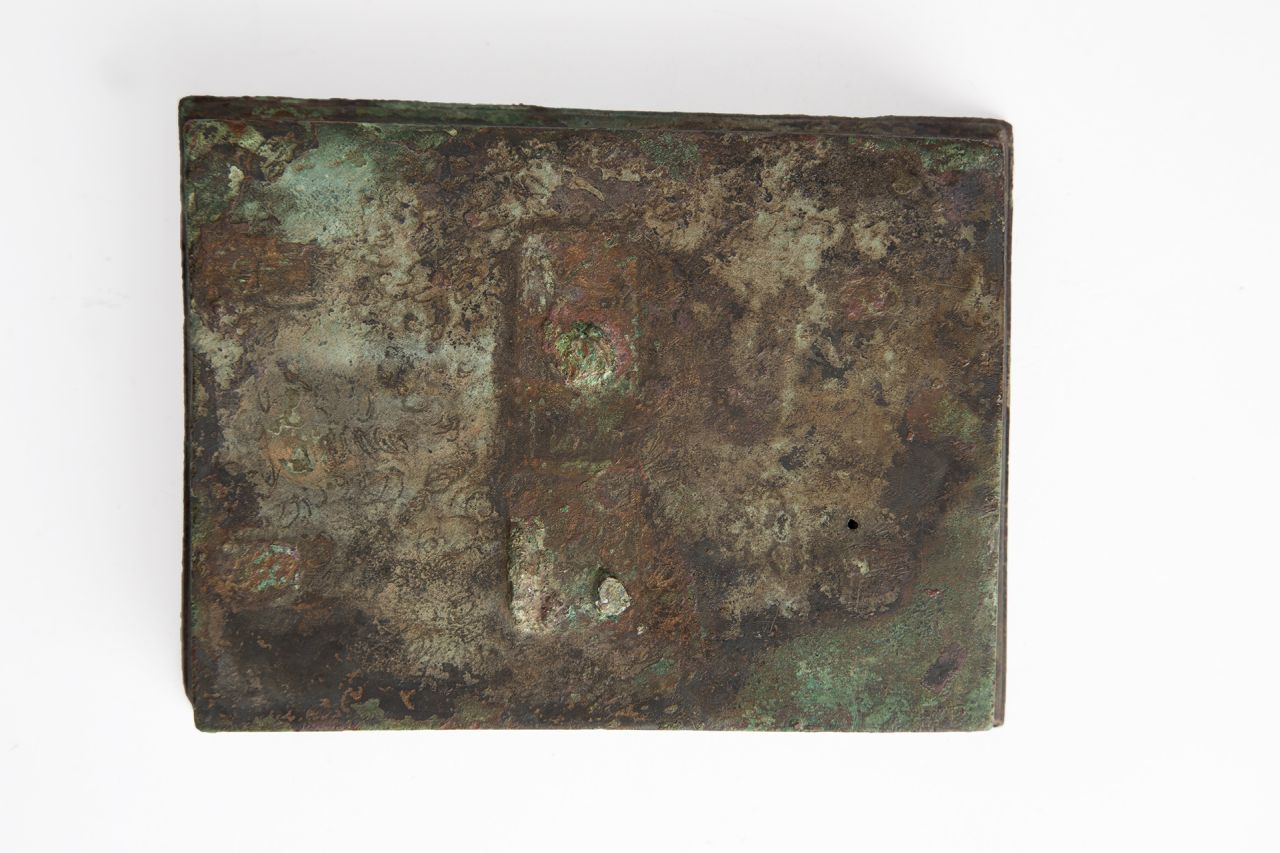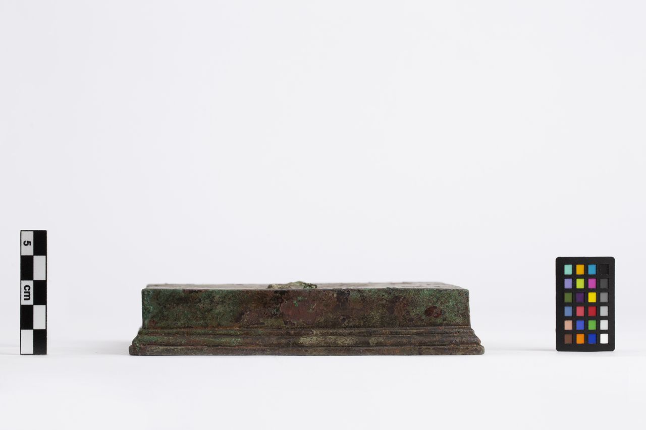 Base di sostegno rettangolare in bronzo, delimitata inferiormente da una modanatura composta da una gola dritta tra due listelli