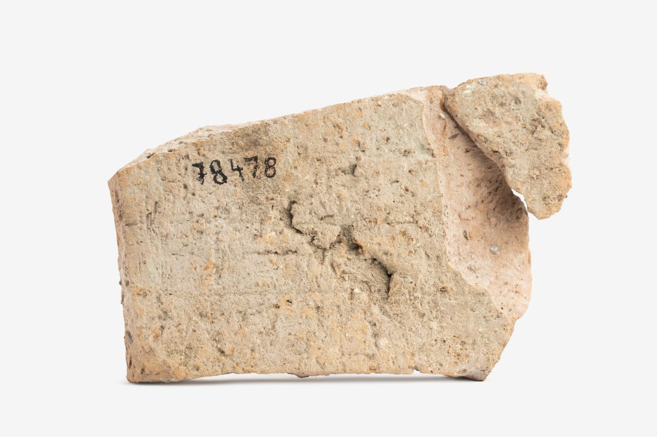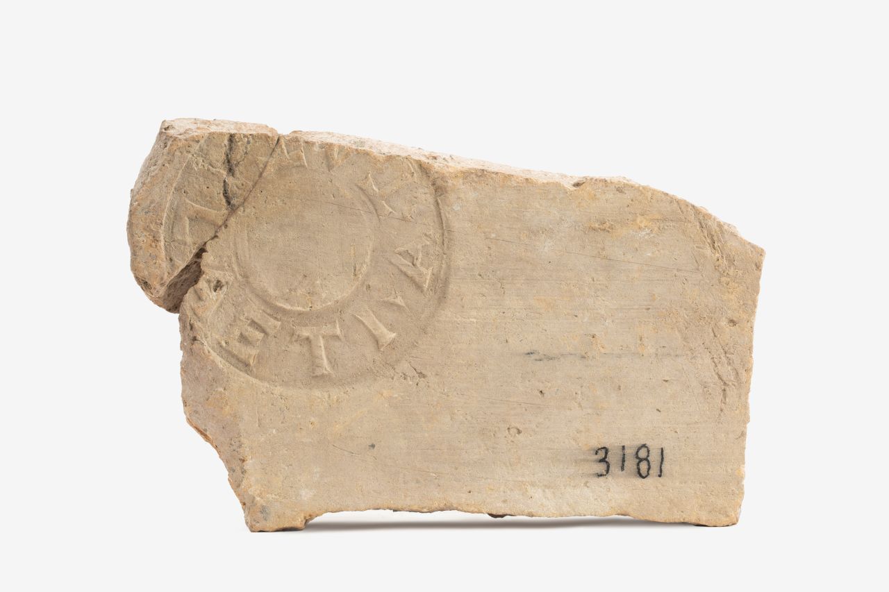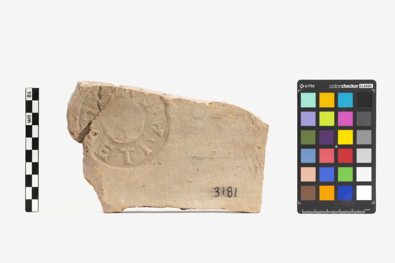 un frammento della parte piana con attacco dell'aletta, liscia, con marchio di fabbrica impresso in cartiglio circolare