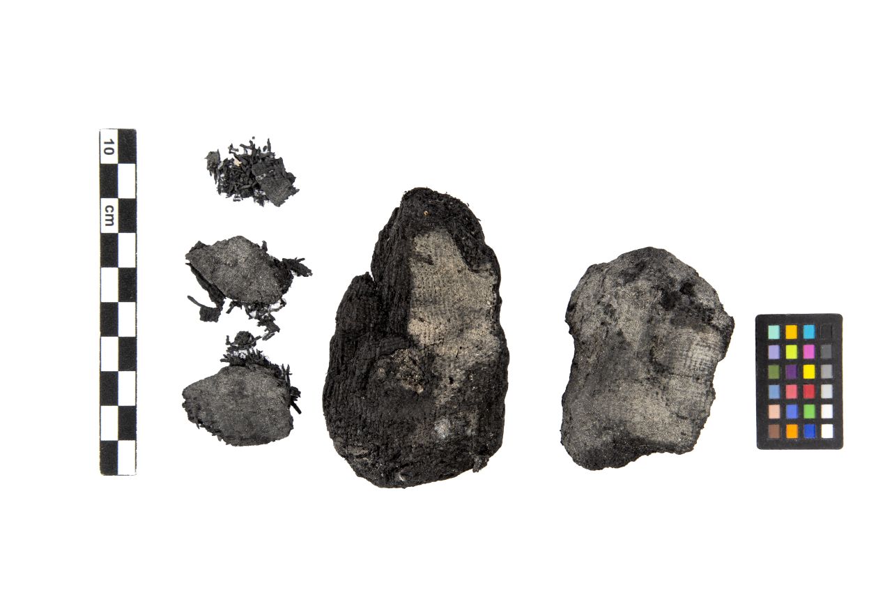 - NOTIZIE STORICO CRITICHE La lavorazione dei frammenti di tessuto si avvicinano a quella di una tela. Essi erano contenuti all'interno di un portalucerna indicato con il n. di inv. 75672 (NTC 1500001314). Diversi gli esemplari di stoffa rinvenuti nella stessa Ercolano: si vedano, a titolo esemplificativo, i nn. di inv. 85046, 85047 e 76106. In generale sulla lavorazione dei tessuti si veda Crowfoot 1961, pp. 420- 454