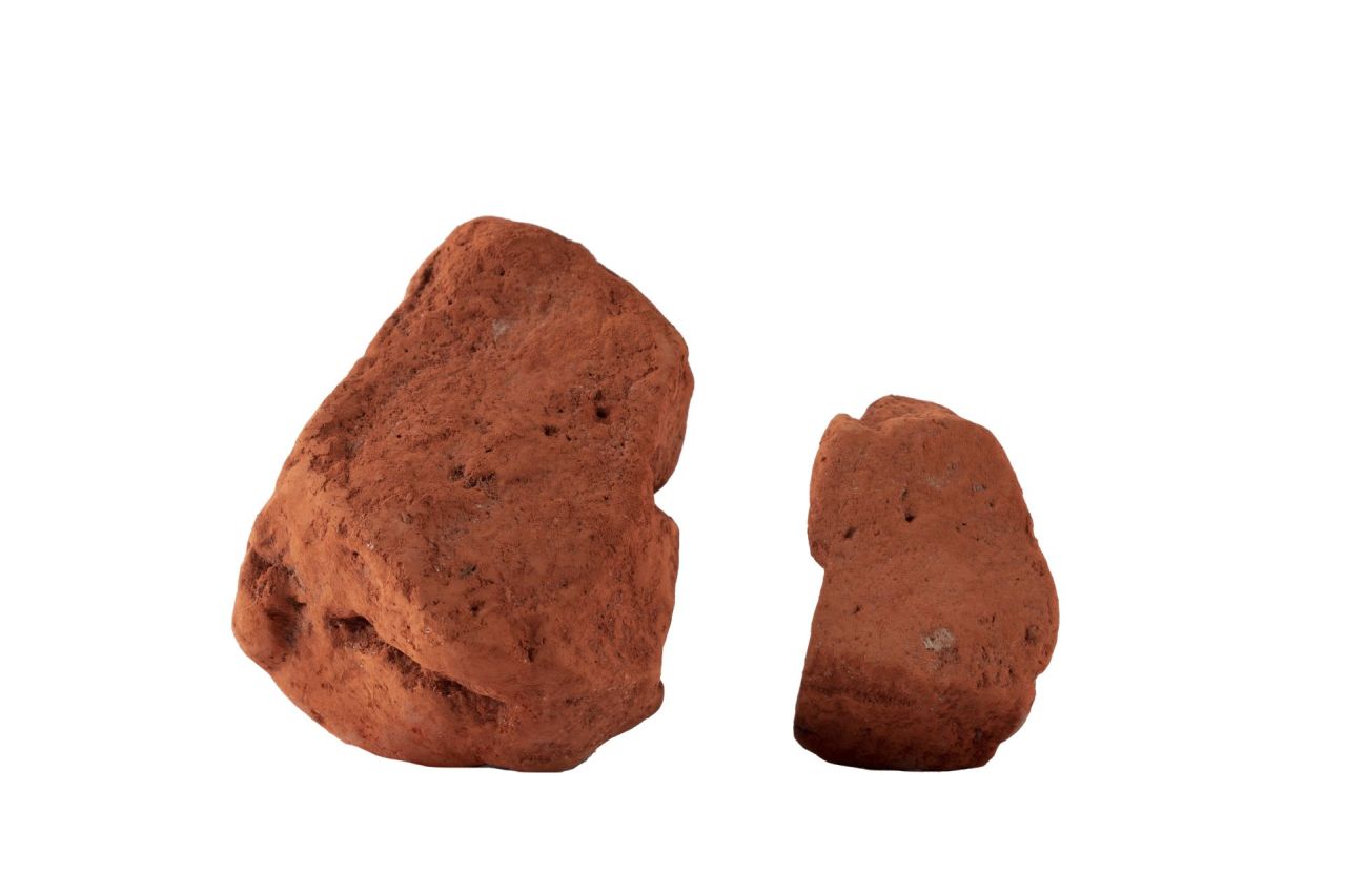 Due grumi amorfi di pigmento di colore rosso/arancio, forse cinabro o minio. Le dimensioni sono diverse, forse in origine unico frammento