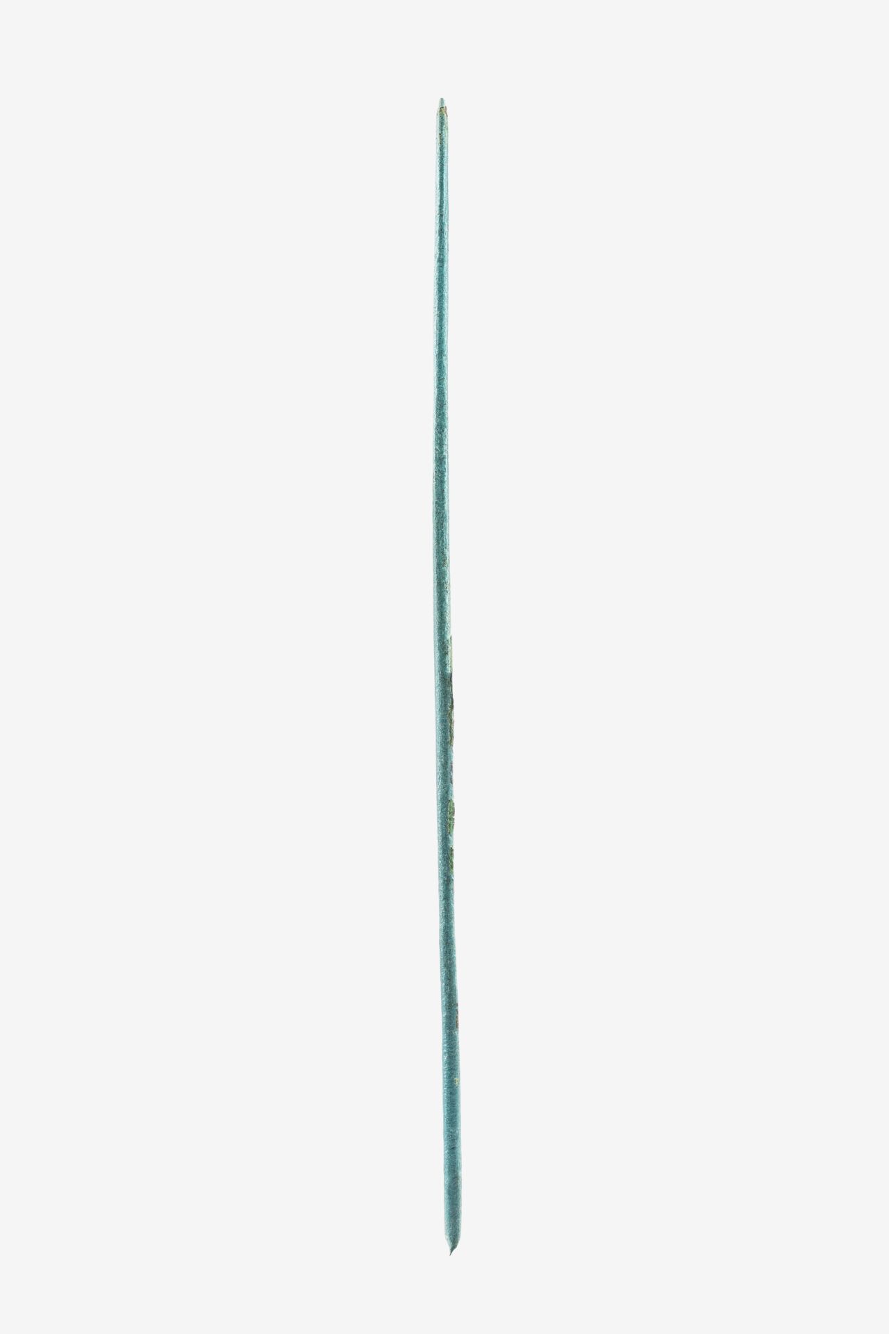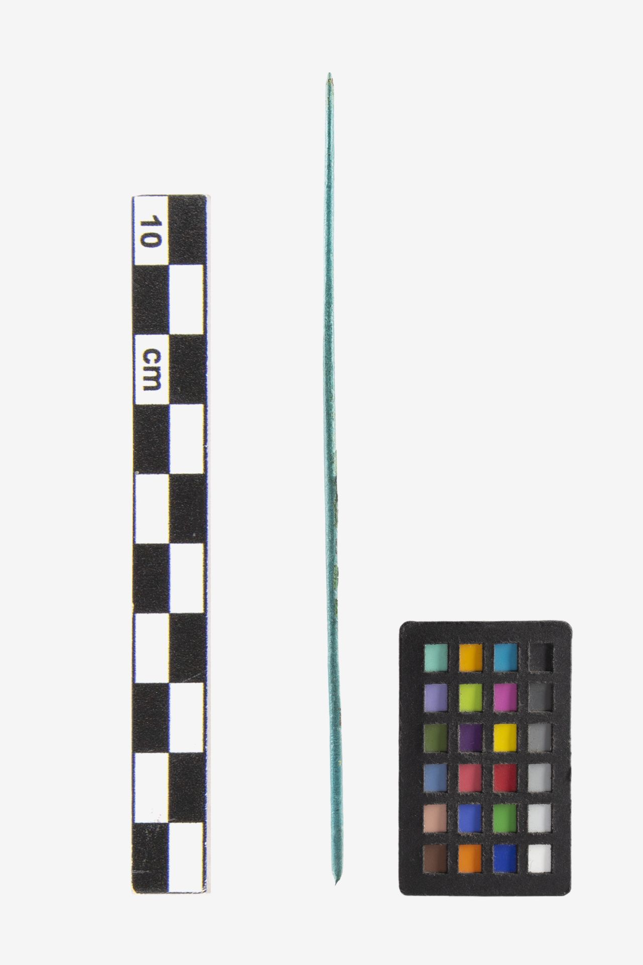 Frammento in bronzo di forma filiforme. Stelo dritto, aghiforme. Una delle due estremità è fratturata, l’altra è appuntita