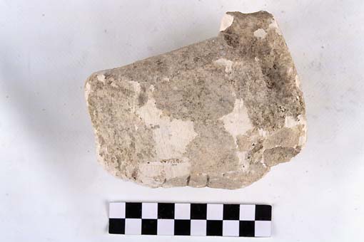 probabile parte di collo, superficie sfaccettata con tracce di linee parallele (collana?)