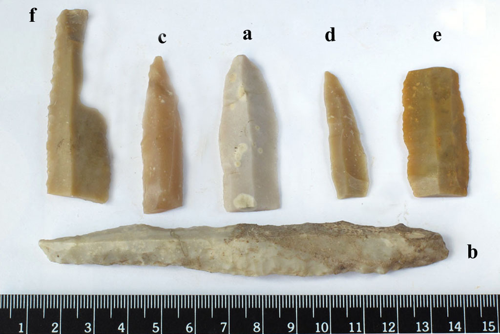Lama a dorso a sezione triangolare; tallone liscio; ritocco semplice, marginale, esterno