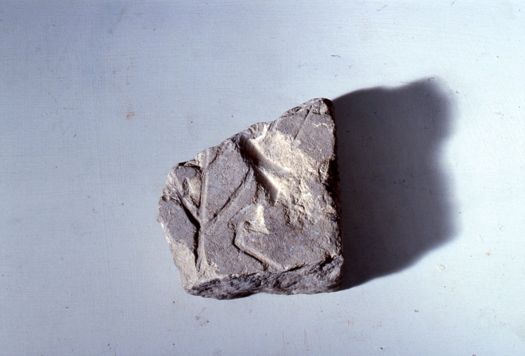Stele funebre con iscrizione ebraica estremamente frammentaria incisa sul recto su cui si leggono, inoltre, i resti di una menorà (bracci). Sul verso l'incisione di una menorà e di uno shofar